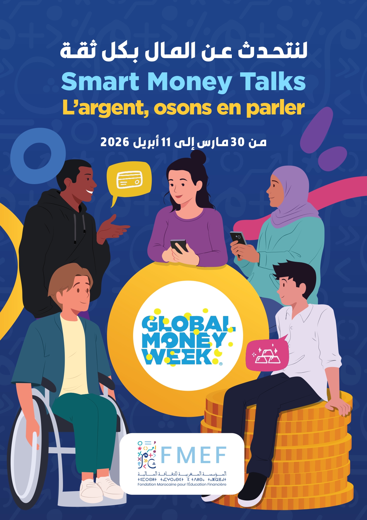 تنطلق الدورة الرابعة عشرة من أيام الثقافة المالية (Global Money Week) بالمغرب خلال الفترة الممتدة من 30 مارس إلى 11 أبريل 2026، تحت شعار: لنتحدث عن المال بكل حرية وثقة - Smart Money Talks - L'argent, osons en parler. وتعد هذه المبادرة، التي تشرف عليها على المستوى الدولي الشبكة العالمية للثقافة المالية التابعة لمنظمة التعاون الاقتصادي والتنمية (OCDE)، فرصة سنوية تعبئ أكثر من 170 دولة لتمكين الشباب من فهم أعمق للقضايا المالية واتخاذ قرارات مالية مستنيرة.